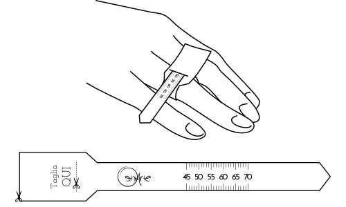 Se hai dubbi su quale misura prendere per il tuo anello o il tuo bracciale puoi utilizzare i Sizer di Etrarte. Dovrai solo scaricare e stampare seguendo le istruzioni i pdf qui in basso.