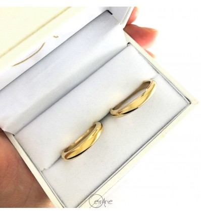 Disponibile in diverse grammature (a partire dalla più leggera che pesa appena 1 grammo) la fede francesina può essere personalizzata con l’aggiunta di un’incisione interna (o esterna) e con un brillantino esterno o, a richiesta, interno.