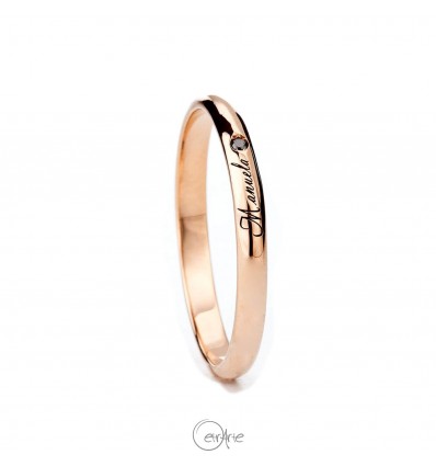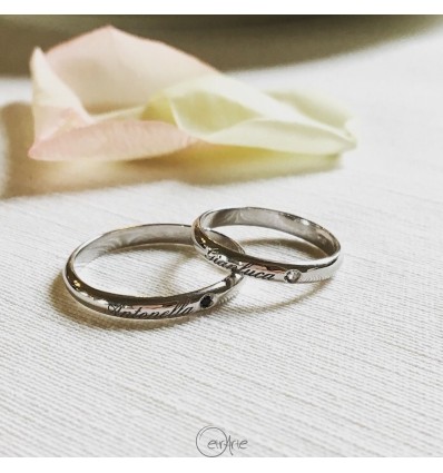 Fede sottile, modello francesina, dalla superficie liscia illuminata da un brillante nero da 1 punto e personalizzabile con incisione esterna.